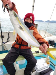 出船前から雨降りだし、寒さで震えながらのかなりコンディションの悪い中で頑張って頂きましたが底潮がかなり冷たく、先日同様魚探によく反応でるも口使ってくれずかなり厳しい釣りになりました😖バラシは全体で3回。アタリも釣れたのを含めたった7回と撃沈でしたm(_ _)m