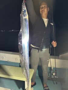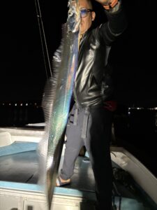 遠くから来て頂くので欲張って釣れるものを釣ろう!とカワハギに行く前2時間弱程度キャスティングのタチウオ釣り☺️
