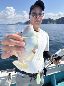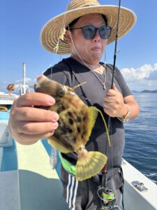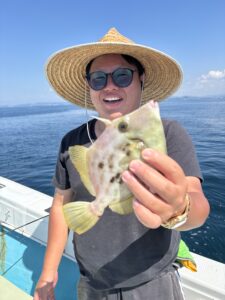 明るくなってからはタチウオのアタリもバッタリ止まりこの後はカワハギ狙ったりアオリ狙ったりとお好きな釣りを。アオリは何回かアタリあったもののアオリの顔はみれず、サバフグが多かったです。最後はカワハギへ!