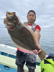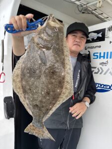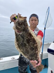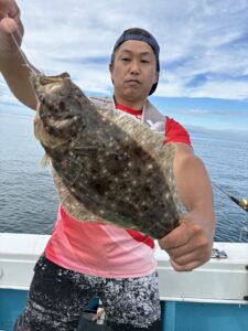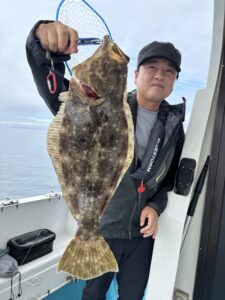 途中雨降り始め、冷える中でヒラメも納竿までまんべんなく釣れてくれました😁ヒラメも良型連発です🎣