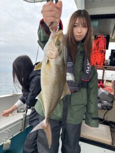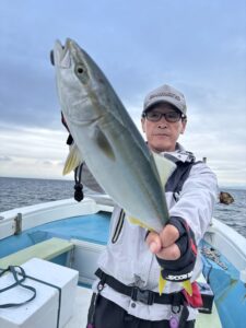 初心者の釣りガールも男性人に負けじとレンタルロッドで頑張って頂きナイス釣果☺️途中、カンパチのアタリ頻発し皆様ハリス切れ多発しましたが終わってみればヒラメも青物もよくあたってくれました!!シオは釣れるんですが中にデカいの混じってハリスやられます😭