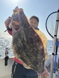 時間的に納竿時間くらいから潮動きたず感じだったのでそこまで頑張ってもらいましたが結局魚釣れず納竿時間が迫る中、予想通りプチラッシュにあたってくれて少し時間延長して粘りました🙇♂️潮変わった瞬間皆様竿曲げてくれましたが納竿時間も過ぎていた為そこで終了となりました。ヒラメも75センチの良型サイズ出ました。本日は御乗船有難うございました。